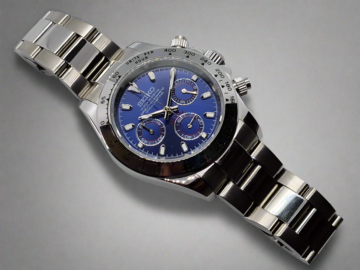 Seiko Mod Daytona-Style Chrono | Cadran albastru | Safir | Oyster din oțel | VK63