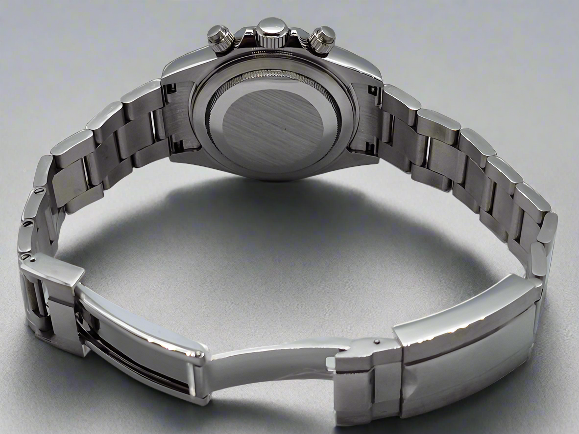 Acest Seiko Mod, inspirat de Daytona, surprinde moștenirea motorsportului cu o notă rafinată și modernă. Cadranul albastru intens, cu aspect de soare, prezintă trei subcadrane funcționale pentru cronograf, indici și ace luminoase argintii pentru o lizibilitate excepțională. Carcasa din oțel inoxidabil lustruit este asociată cu o lunetă tahimetrică fixă și o brățară în stil Oyster asortată, pentru un aspect îndrăzneț, dar sofisticat.