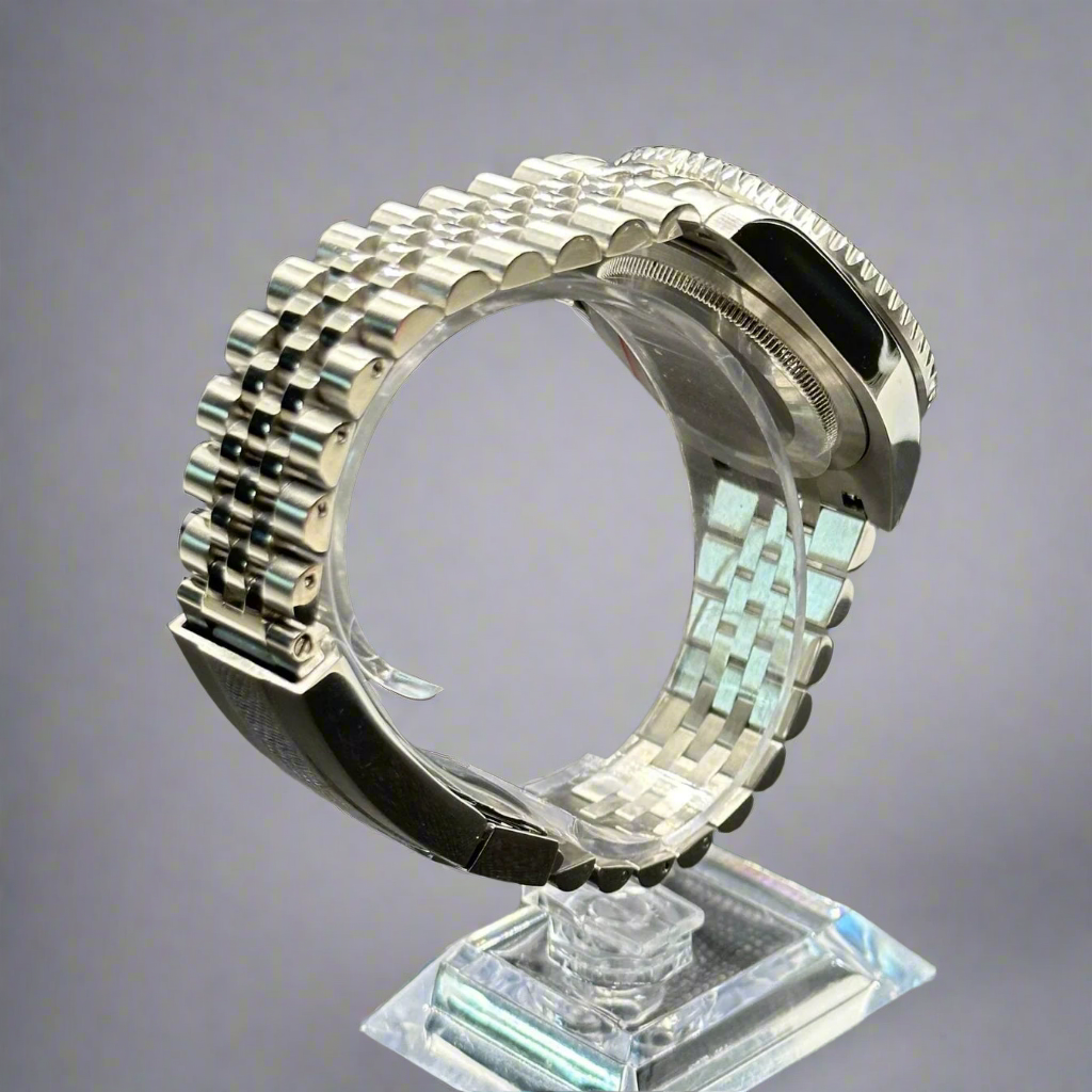 Acest ceas GMTEIKO Seikmod combină funcționalitatea practică de călătorie cu un design inspirat de lux. Are un cadran negru cu o lunetă ceramică verde și neagră cu afișaj de 24 de ore, mecanism automat GMT NH34 și un cristal de safir pentru durabilitate zilnică.